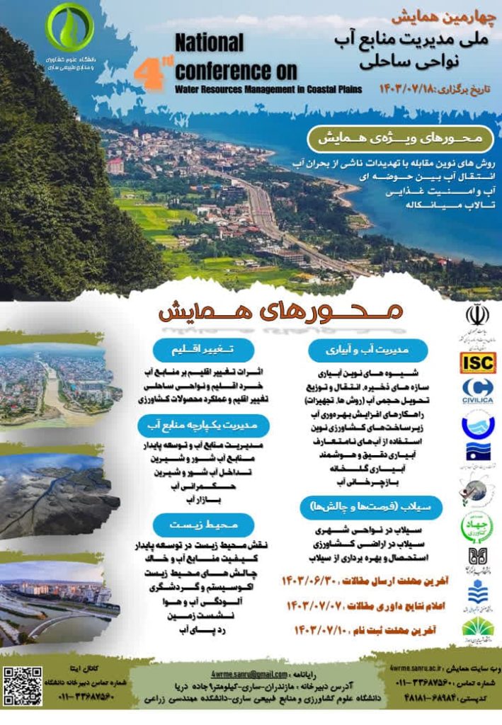 چهارمین همایش ملى مدیریت منابع آب نواحى ساحلى به میزبانی دانشگاه علوم کشاورزی و منابع طبیعی ساری برگزار می گردد